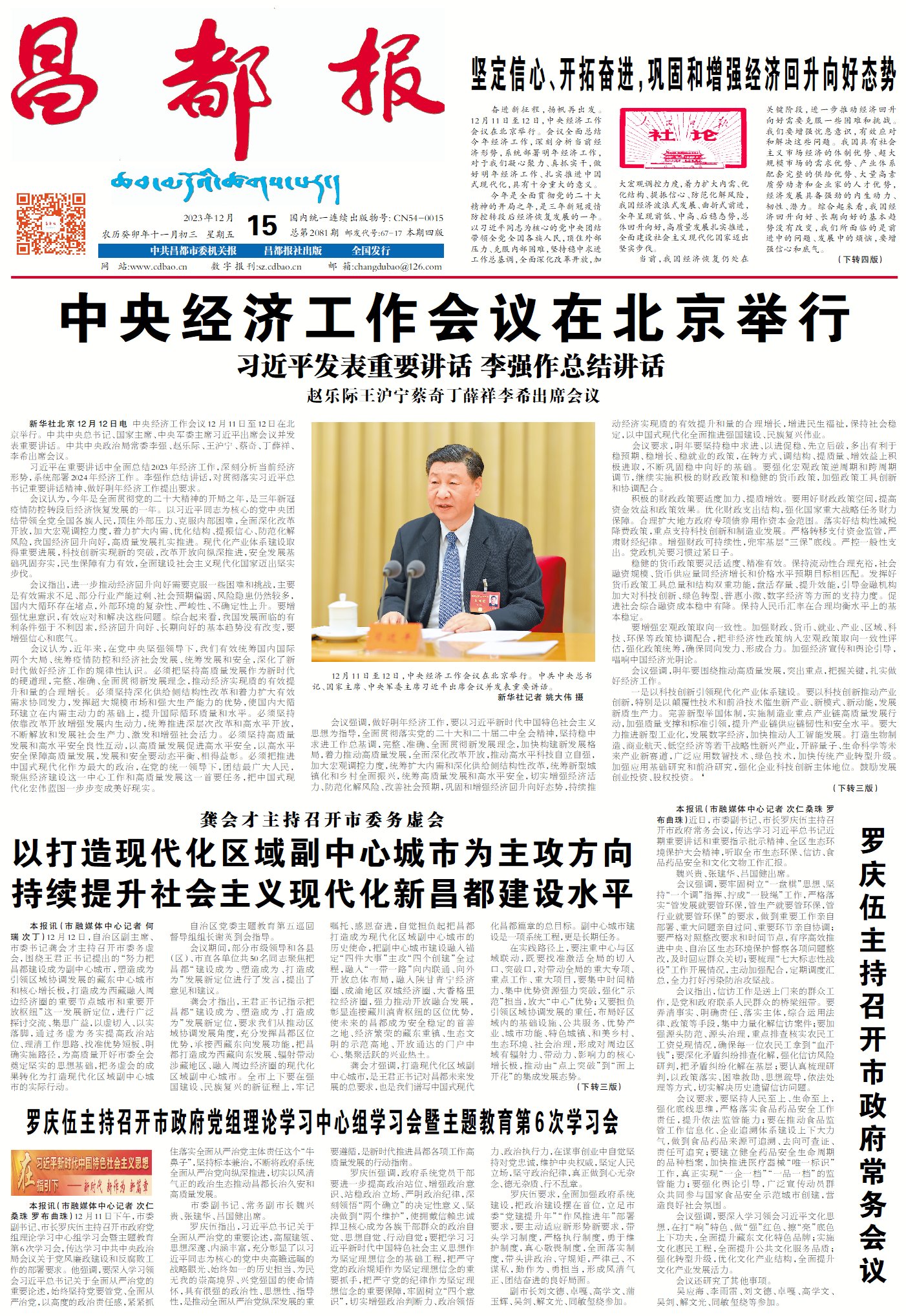 明年經濟工作的大政方針已定,鞏固和增強經濟回升向好態勢,持續推動經濟實現質的有效提升和量的合理增長,使命在肩、責任重大。讓我們更加緊密地團結在以習近平同志為核心的黨中央周圍,堅持以習近平新時代中國特色社會主義思想為指導,深刻領悟“兩個確立”的決定性意義,增強“四個意識”、堅定“四個自信”、做到“兩個維護”,堅定信心、開拓奮進,努力實現經濟社會發展各項目標任務,以高質量發展的實際行動和成效,為以中國式現代化全面推進強國建設、民族復興偉業作出新的更大貢獻。